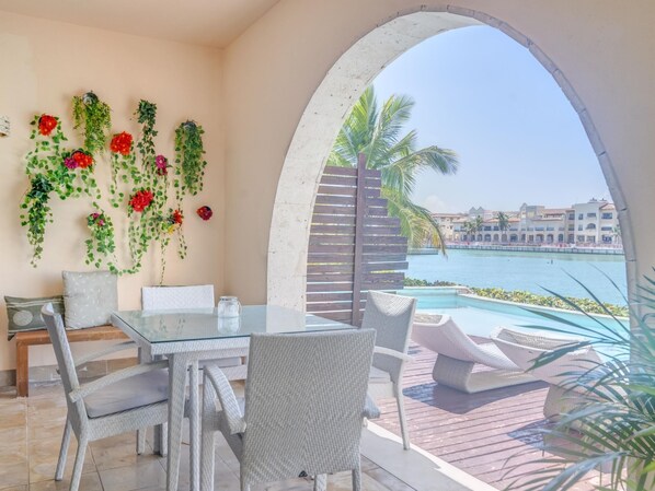 This property was wonderful!!! Extremely clean, well kept and well appointed with all the accompaniments that anyone could need to have a relaxing and enjoyable vacation. The cap Cana area is a very quiet area , ideal for those looking to have a private and quiet vacation. The apartment is just as you see in the pictures, the views of the marina are stunning, well worth it. The location of this apartment is great, as it is in the center of the whole marina and you have the conner swim out pool, which is spacious and very private. Couldn't be more happier, with the location of this wonderful and relaxing apartment. I is great that you also have access to the pools at Alsol luxury village, if you decide to buy the all inclusive, then you could also have access to Alsol Tiara resort. If staying in the area, I would recommend you rent a car at the airport, as there are multiple places you might want to travel within the area, but you don't really have to as, there are shuttle buses that can take you, just check with the front desk for instructions. Heidi the care taker of the apartment was great, very friendly and helpful with anything. Galindo, the owner, was always very helpful with any information you may need. Overall, we had a wonderful time here, and will be looking foward to be back . P.s. if you looking for a party place, go to Punta cana, if you just want to chill, and relax quietly. Come to cap cana. The A/C worked great, just make sure to close the doors properly. Thanks again Galindo and Heidi!!!!!