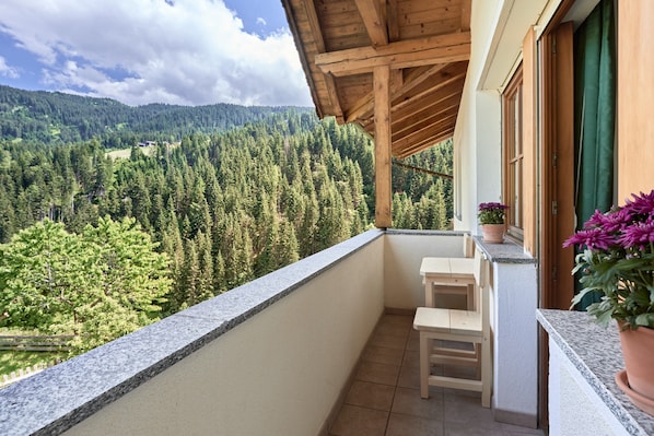 Your private outdoor area includes a balcony, the perfect setting to wake up and enjoy your morning coffee. The property also has access to a shared outdoor area which includes a garden and garden furniture. From here you can relax and admire the stunning mountain views.