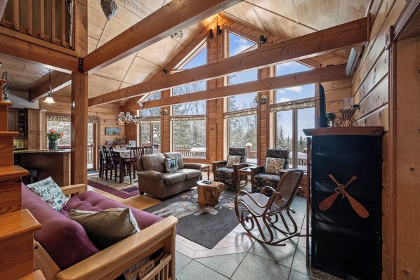 One of the property's highlights is its expansive deck, where guests can relax with morning coffee or dine outdoors while taking in the breathtaking views of Rangeley Lake. Large windows throughout the cabin bring in plenty of natural light and showcase the stunning lake scenery from nearly every room. The expansive views provide a sense of peace and connection to nature, perfect for unwinding and enjoying time together.