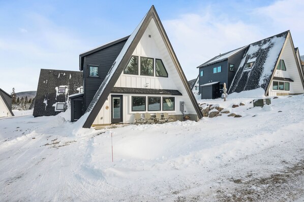 Perched on Saddleback Mountain, this A-Frame retreat offers ski-in/ski-out access and breathtaking views of the mountains. Unwind in the modern living area with a gas fireplace, or enjoy high-end furniture and a fully-equipped kitchen. Take advantage of WiFi, Smart TV and Bluetooth Stereo for entertainment.