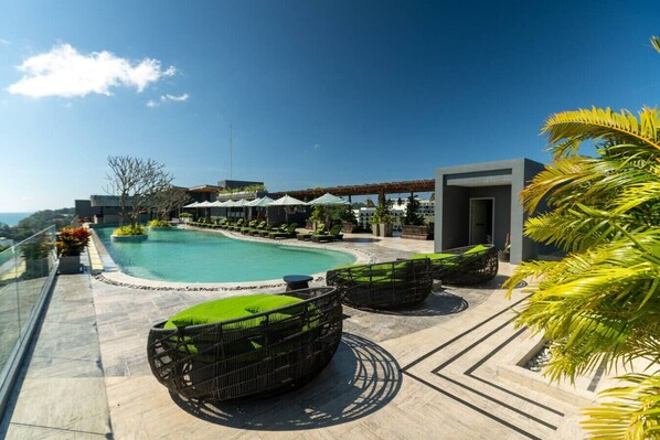 Общие зоны: ✓ Бассейн на крыше с прекрасным видом ✓ Большой детский бассейн на первом этаже, игровая площадка ✓ Большой тренажёрный зал ✓ Охраняемая парковка ✓ Бар у бассейна ✓ Смешанные зоны отдыха на крыше, включая гамак и шезлонги ✓ Маршрутный автобус до пляжей Януи и Найхарн ✓ В пешей доступности от местных баров и ре сторанов