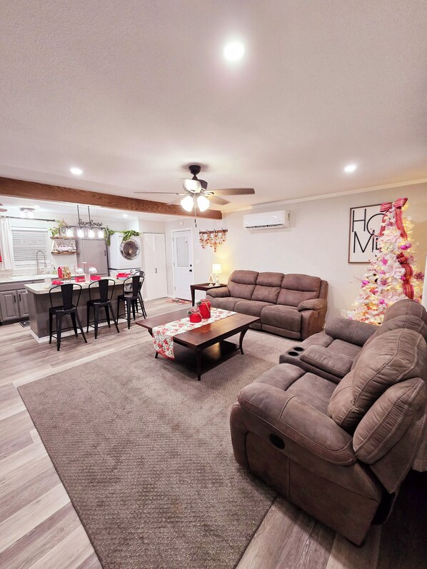 Discover the beauty of Rising Star from this 3-bedroom house. This gorgeous property features 2 bedrooms each with a Queen beds and 1 bedroom with 2 Twin beds. Each room has ceiling fans and a separate mini-split allowing for unique temperature controls along with "blackout" curtains. Each bedroom features it's own streaming 40" Roku TV with Netflix. Living Room has a 58" firestick streaming TV.
