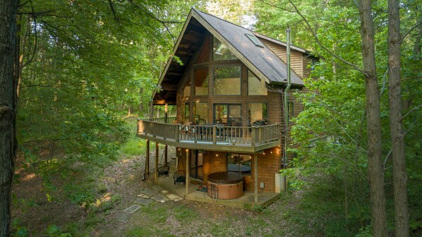 - Private hiking trails on the property, just for you - Game room w/ pool table + arcade games + Nintendo - Amazing wraparound deck w/ hot tub and mountain views - 50" smart TV w/ Netflix, Disney+ & Hulu - Electric fireplace - Fully equipped + stocked kitchen - Outdoor dining area + fire pit