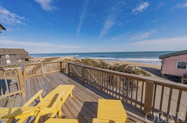 Wake up to the sunrise over the Atlantic Ocean. Dunes surround the home, Shoreline is just steps away. Multiple outdoor spaces including, decks, screen porch, widows watch and outdoor shower. Amazing views from Sunrise to Sunset!