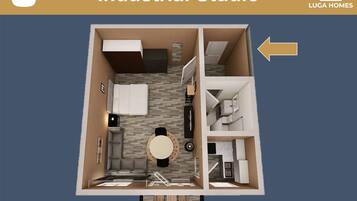 Luga Homes - Gewandhaus - Industrial Studio mit Küche und Balkon