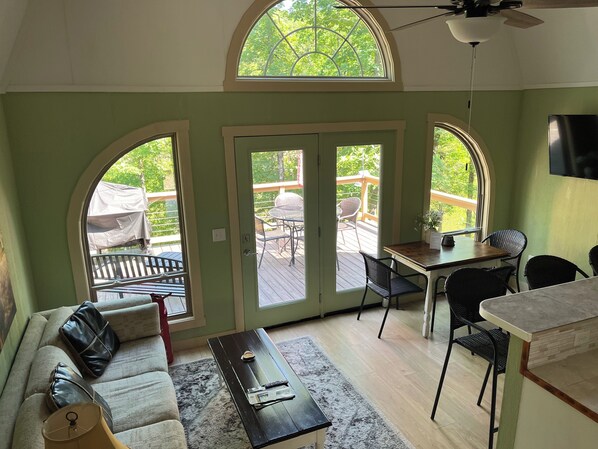 Outside, you'll find a table with chairs on the deck. Relax and watch the birds come to the bird feeders.