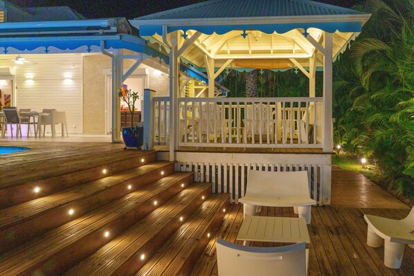 • A first traditional Creole carbet, ideal for enjoying an aperitif in classic planter chairs