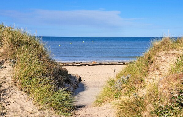 Take a few steps to the beach and enjoy the sea and sun to the full and relax on the fine sand. Here you will also find ideal conditions for water sports activities such as beach sailing, canoeing and kayaking. Bring your kite or windsurfing equipment, which you can store safely on site. Located between Omaha Beach, Utah Beach, Granville, Le Cotentin in Normandy and Mont-Saint-Michel, the house is the ideal base camp for exploring the region on foot, by car or by bike.