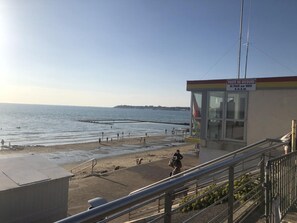 Beach 50m away with no street to cross.10-minute walk to town center.