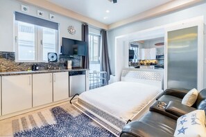 Escape to a serene beachfront retreat at our Mission Bay Beachfront Property, where you can revel in the soothing sounds of the ocean. This modern studio offers thoughtful amenities like a luxurious bathtub, direct beach access, and an outside patio with propane grill for all guests to enjoy.