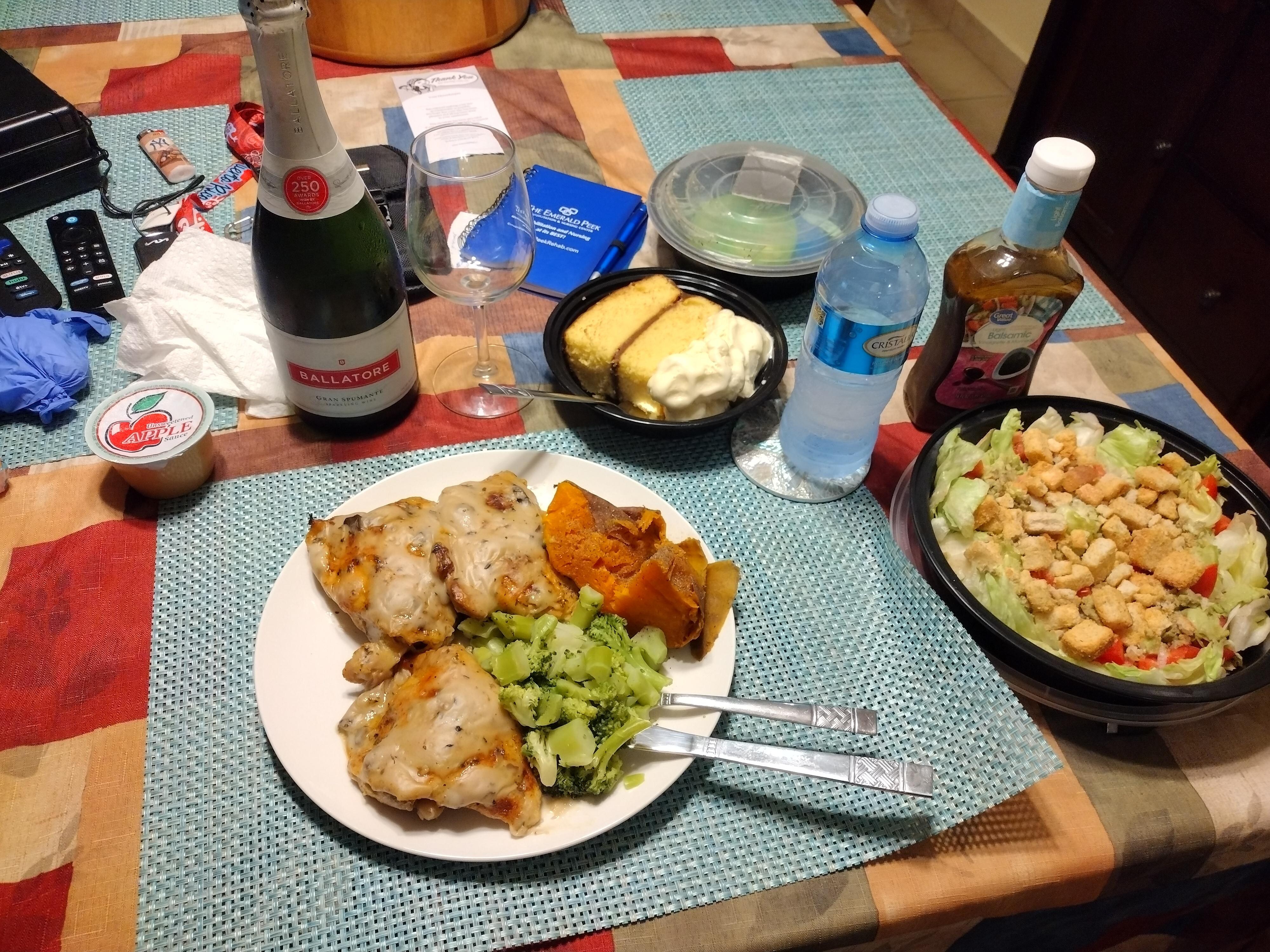 h) Rice and beans cooked together, chicken wings and salad (lettuce tomatoes and avocado).