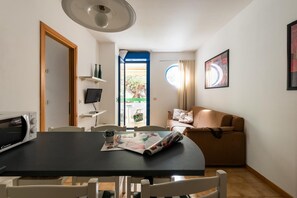Waterfront apartment with kitchen and balcony