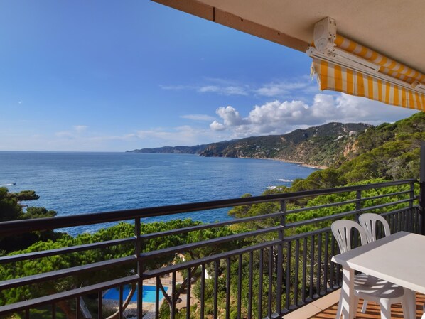 Nous avons passé de belles vacances à St Feliu. La vue sur la mer est magnifique et l'extérieur très agréable (piscine, terrasses avec parasols en bois, accès à la mer...). L'appartement est correct. L'odeur de renfermé domine, notamment dans la chambre et dans les tiroirs et placards de la cuisine. Il est presque impossible de dormir dans le clic-clac : le matelas est complètement usé et donne mal au dos. Au bout d'une nuit, nous avons préféré tous dormir dans la petite chambre. La terrasse est agréable.