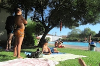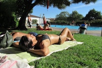 Recreational amenities at the campsite include a seasonal outdoor pool.