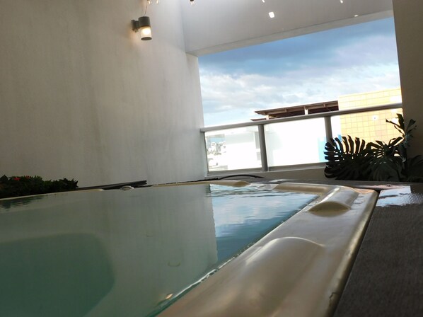 Take advantage of an inflatable Jacuzzi on the private terrace.