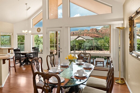 Fantastic red rock views from almost every room! This immaculate home sits on 1.3 secluded acres in the upscale neighborhood of Sun Up Ranch, in the Village of Oak Creek, close to 3 well-known signature Sedona rock formations; Bell Rock, Courthouse Butte, and Cathedral Rock.