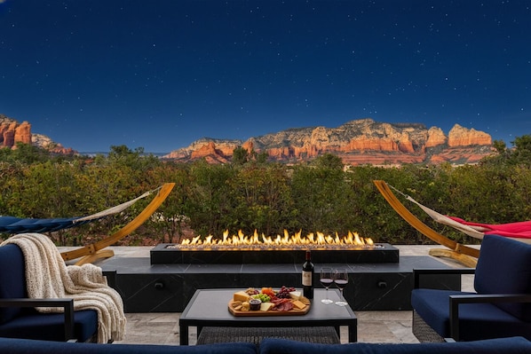 In the heart of West Sedona, Sedona Shangri-La offers a luxurious escape with panoramic views of the red rocks. Unwind in the infrared sauna, rejuvenate with a cold plunge, or relax by the gas fire pit and BBQ island.