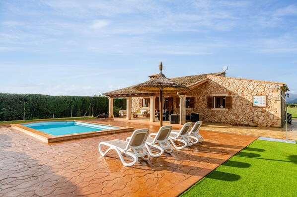 The villa in Sencelles has 2 bedrooms and has capacity for 4 people. The villa is cozy, is fully-equiped, and is 969 ft². It hasgarden and swimming poolviews. The property is located 0 ft from the rock beach, 2.8 mi from Inca city, 2.8 mi from Aldi Inca supermarket, 16.16 mi from Can Picafort sand beach, 16.47 mi from Pollença Golf Club golf course, 20.51 mi from Son Sant Joan airport. The house is situated in a family-friendly neighborhood in a beautiful rural area.The accommodation is equipped with the following items: garden, outdoor furniture, fenced plot, 1,076 ft² terrace, washing machine, barbecue, iron, internet (Wi-Fi), heat pump, air conditioning throughout the house, private swimming pool, open-air parking in the same building, 1 TV, satellite tv (Languages: Spanish, English, German).In the induction independent kitchen, refrigerator, microwave, oven, freezer, dishwasher, dishes/cutlery, kitchen utensils, coffee machine, kettle and juicer are provided.