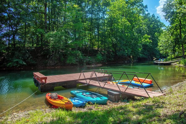 On the shores of a serene lake, this beautiful updated LAKE HOUSE is just 5 minutes from downtown Clemson and Clemson Memorial Stadium. Enjoy paddle boarding, kayaking or lounging on the lake couch with life jackets provided. The house boasts an outdoor hot tub, fire pits and multiple dining spaces for al fresco meals.