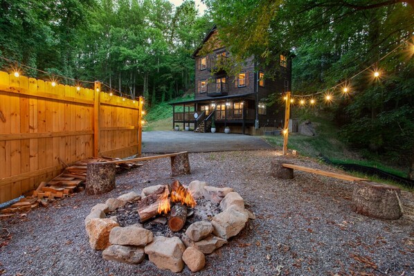An impressive new construction nestled in the peaceful Smoky Mountains, boasting plentiful exciting amenities & is sure to make your mountain retreat unforgettable. The bustling game room features billiards, shuffleboard, arcade, & 80" TV for nonstop fun. Seek peace & relaxation on one of the private ensuite balconies, by the wood-burning fire pit, or in the hot tub. Whether you'd like to relax & unwind or are a thrill seeker looking for endless entertainment, Bear Hollow Lodge has it all!
