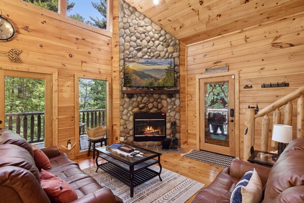 Located in the gated Shagbark community, Beautiful Escape offers a luxurious retreat with a wood-burning fireplace and modern kitchen. Unwind by the electric fireplace in the lofted master bedroom or enjoy outdoor cooking on the grill; engage in foosball or Xbox-360 games, then relax for movie nights on Smart Tv with WiFi.