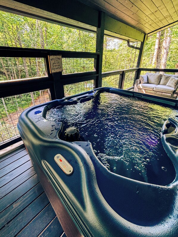 Choose where to sip your morning coffee from one of the 3 covered exterior decks. You’ll find outdoor furniture on each deck and a private hot tub up top! Outdoor dining table and chairs on the upper deck as well. Grab your glass of wine or hot cocoa and enjoy the serene escape to the Great Smoky Mountains Ntional Forest!