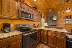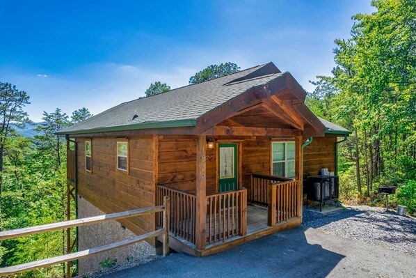 Heavenly View, nestled in the heart of Pigeon Forge, TN, offers a charming one-bedroom cabin with luxurious amenities. Relax on the covered deck in the private hot tub or rejuvenate with a bath in the large soaking jacuzzi tub. The fully-stocked kitchen features granite countertops and stainless steel appliances.