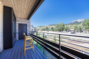 Escape to the mountains at this upscale retreat in Silverthorne. Enjoy radiant heated floors, a private balcony with views of Buffalo and Red Mountains, and modern finishes. This stylish unit features a corner gas fireplace, mounted smart TV, and comfortable accommodations for 6 guests.