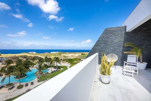 Escape to The Reef Curaçao, nestled in a tropical garden on Blue Bay Golf & Beach Resort. Unwind by the swimming pool with an ocean view or explore the nearby beach just five minutes away. With high-quality WiFi and a 55-inch TV, you'll feel right at home in this luxury apartment complex.