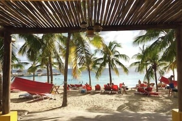 Our V.I.P. BLUE BAY BEACH VILLA #28 is close to the beach and the pool and has by far THE MOST STUNNING VIEW OF ALL BEACH VILLAS! Lounging at the spacious veranda overlooking the ocean, the palm trees at the beach, the flamingo lake and the golf course is really dazzling!