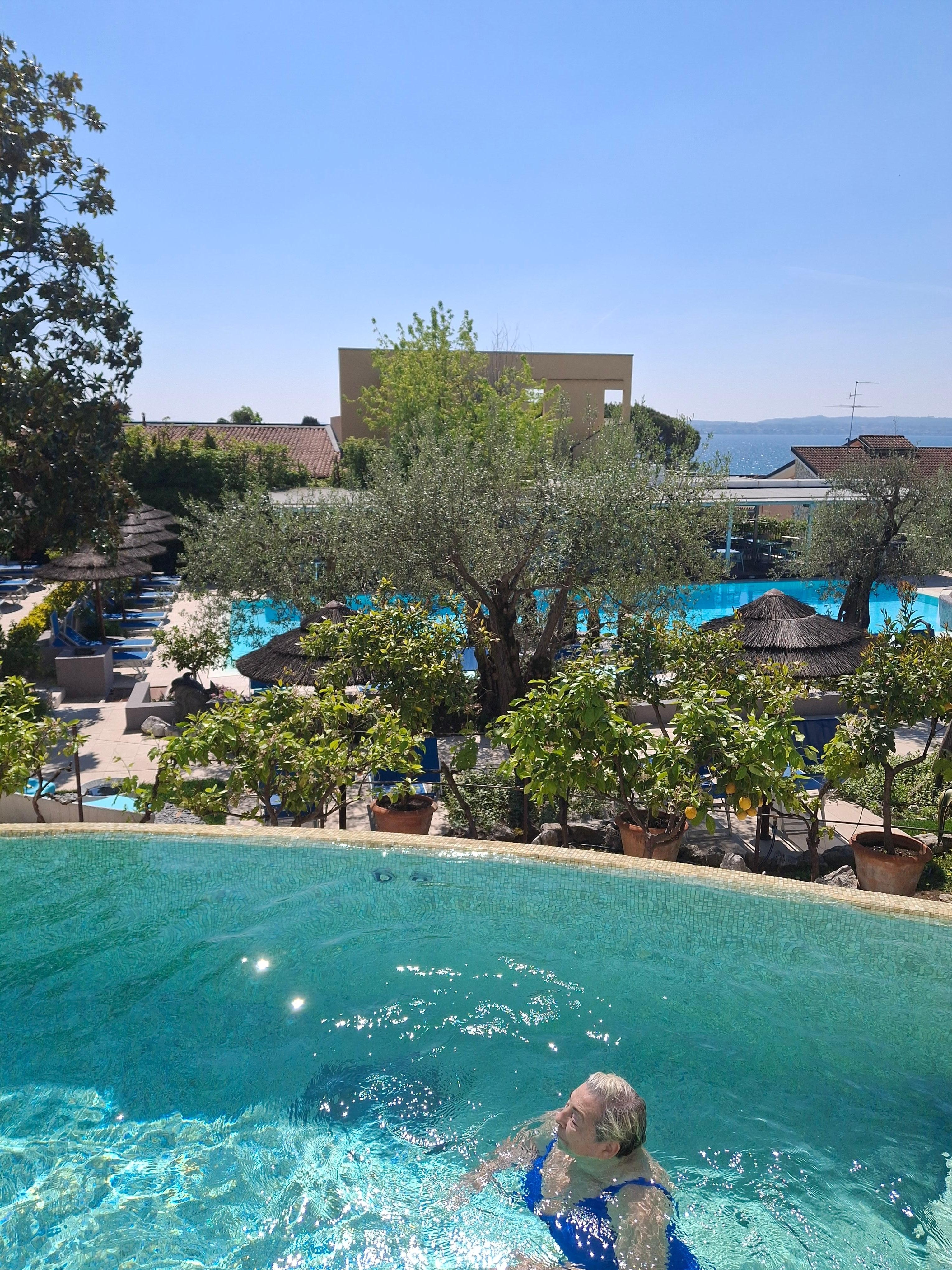 The hotel is situated in a quite area of Sirmione which given the crowds, it's nice to get away from. It is however a very short walk back into town where you will find lots of restaurants, bars and shops. The hotel was OK - our room was rather small and dated. Simple things like a hook for the towel would be good to add. Also disappointing that the outdoor pool was freezing but if you wanted to use the indoor pool you have to pay an additional £25 per person. I can understand if you want a treatment, but a quick swim - seems a little excessive for a couple to be asked to pay £50. Staff were lovely and friendly though.