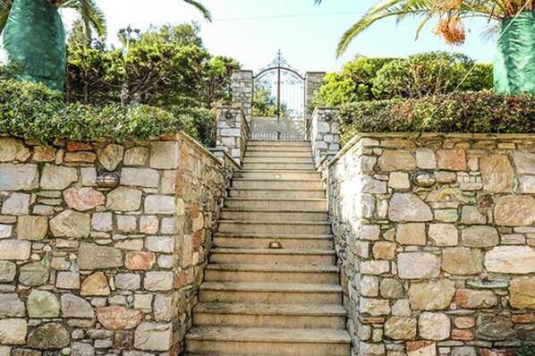 Amazing stay. We had a large group so needed some room. This house provided tons of space. We arrived at port early around 10am and were greated at port and escorted back to the villa. Upon arrival we were able to check in early. Once you step into the property you are greated and showed the entire property and how all the electronics work. Owner was fluent in English. The views from the villa are amazing. No pictures can do it justice. The pool is natural water and the kids couldn't get enough. There is dozens of spots outside to sit and enjoy the view and soak up some sun. The place was clean. Not a speck of dust or dirt inside or outside the property. Secure location and property. Stepping inside there is a unique property with an art and Greek feel. Large kitchen and living area. 5 bedrooms and 2 1/2 bathrooms made the stay enjoyable. Views continue from the rooms and the patios. Plenty of hot water for showers. Maid service. Supermarket, beach, and restaurants are right down the hill. It was an amazing stay in Skaithos. Would definatelty stay here again, and would recommend the house for large groups, or the smaller rooms for couples looking to get away in Skaithos.