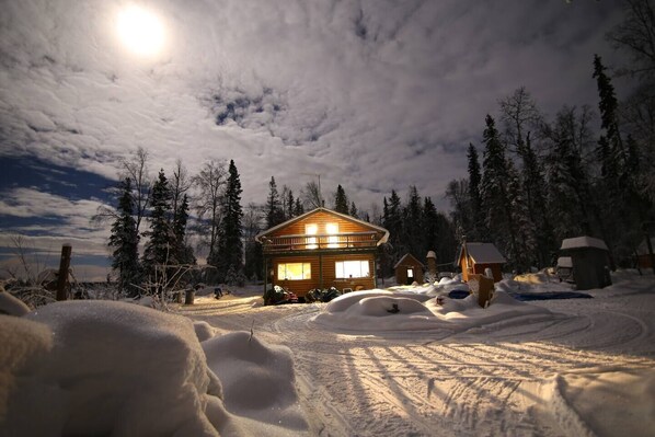 Open all year, our wilderness lodge is 38 miles from the nearest road on the Iditarod Trail and only accessible by airplane, snowmobile or boat. Guest cabins and rooms are well heated and dry with no plumbing. Experience the real Alaska including boating, hiking, fishing, snowshoeing, snowmobiling, sledding, cross country skiing, Northern Lights Viewing, Iditarod Dogsled race. Also wedding venue. Main lodge amenities: wifi, great food, bathroom, shower, and TV in our main lodge. Sauna available