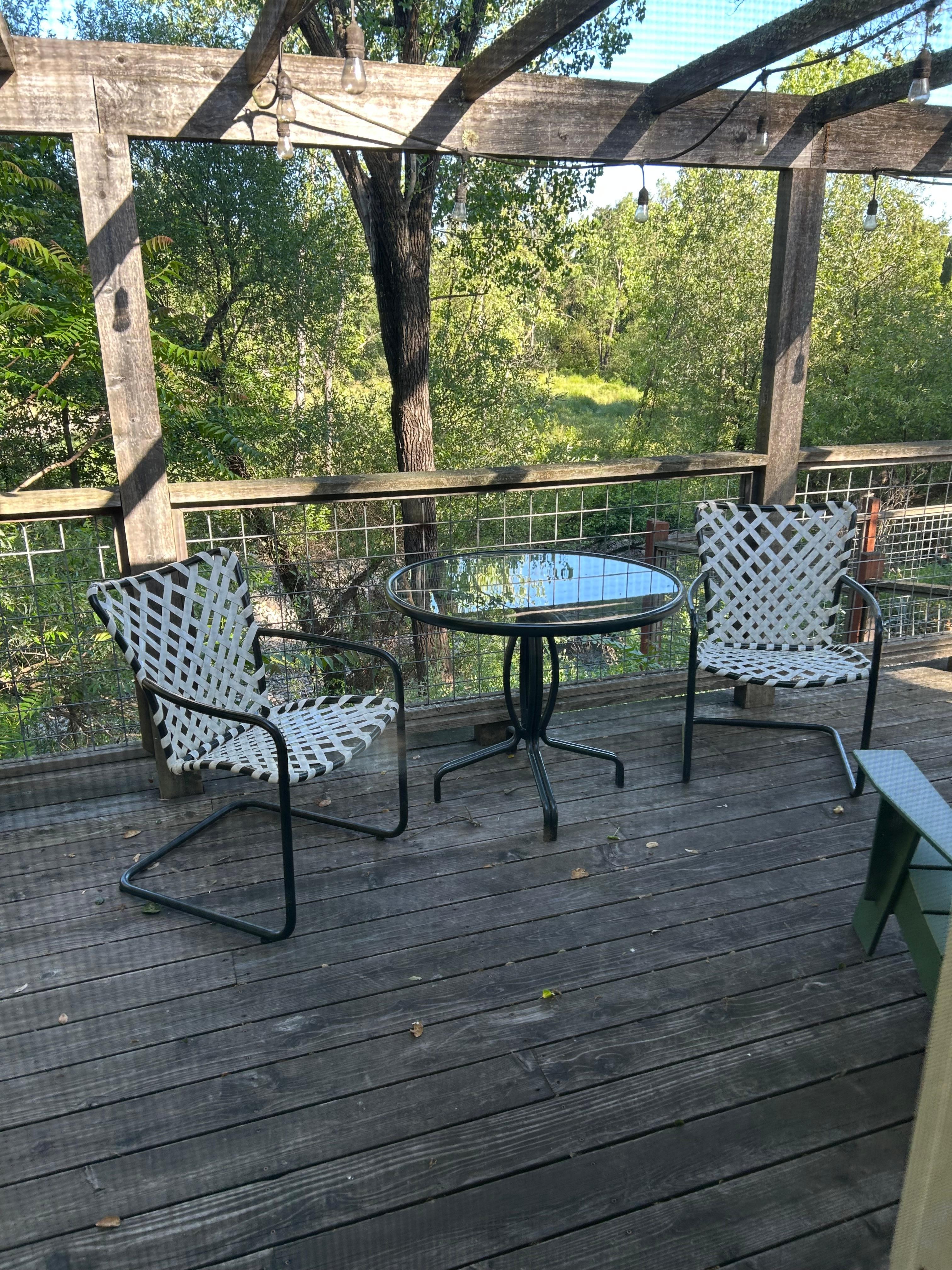 Guests who book during the winter / rainy season may get a special whitewater treat! Since the Bungalow is overlooking Sonoma Creek, you will enjoy an exciting show if there is a rainstorm, and the tranquil creek gets a little more exciting! Part of the deck is covered, so you can enjoy a thrill during a rainstorm! (Don't worry, you are safely high above the creek in the ravine below.)