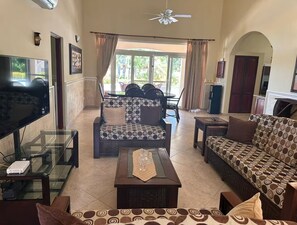 Close to Sosúa Beach, 3BD/3BA central villa w/ pool, parking & sports courts provides amenities such as laundry facilities. Guests can connect to in-room WiFi.
