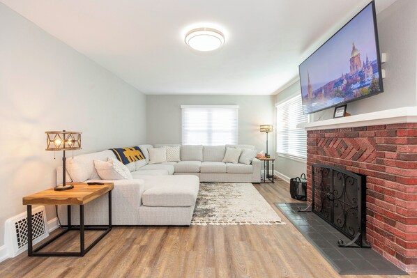 Newly renovated home in a beautiful, neighborhood designed with your comfort in mind. Brand new quality bedding, linens, furniture and amenities throughout. Fully equipped kitchen with brand new appliances. Only a 5-minute ride or short walk to Notre Dame campus. Great for families or groups traveling to South Bend to visit Notre Dame or for other local events. It can comfortably accommodate up to 10 people. The private back yard is ideal for hanging out with your group.