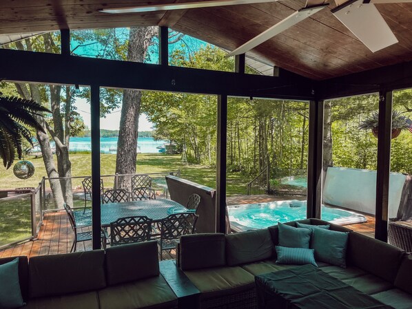 - Stunning views of Lake McKenzie from the screened-in porch, wraparound deck, and 10-person hot tub.