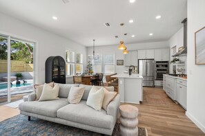 BRAND NEW 4-bedroom, 2 primary suites, heated pool, steps to the beach and river provides laundry facilities and more. Guests can connect to free in-room WiFi.