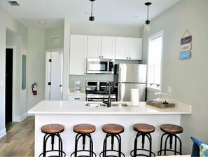 In the heart of downtown St Augustine, The Stonewall Apartment offers a charming retreat. With a private entrance and large one-car garage, unwind in comfort after exploring historic venues and shops within walking distance. Enjoy cooking in the well-equipped kitchen or relax with games and Smart TV.