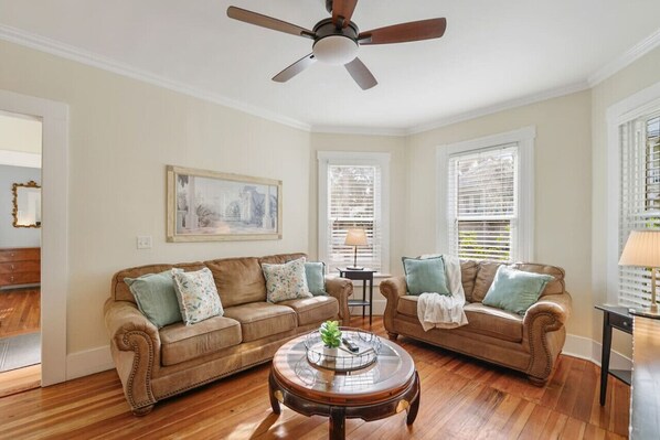 Sunny Sanchez I, a downtown St. Augustine retreat, offers a sunlit living area and well-equipped kitchen perfect for family gatherings. Take advantage of the bicycles to explore historic streets and attractions or relax on the sunny front porch with morning coffee or evening wine.