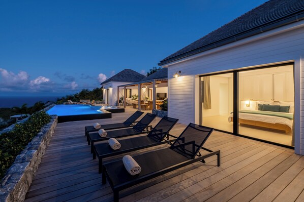 This 2 Bedroom Villa can be rented as a 1 Bedroom Villa at special rates! Ma’O is a 2 bedrooms villa located on the heights of Vitet with a modern style while keeping a Caribbean charm, You will appreciate its magnificent 180° view on the ocean. The modern and very well equipped kitchen with food processor, wine cellar and ice maker offers you everything you need to satisfy your culinary desires. The living room is oriented towards the terrace, perfect for relaxing while admiring the landscape. The outdoor dining table is perfect for family meals and inviting friends. The master bedroom is very well decorated, modern and with an ocean view. It is equipped with air-conditioner, a large bathroom with double sinks and an Italian shower. The second bedroom, very similar, will offer you the same comfort. Calm and relaxation will be the order of the day in this new villa with an incomparable view, perfect for a stay as a couple or with family or friends.