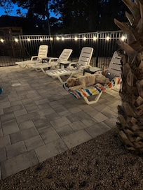 Beautiful St.George Island pool home, large patio pool surround & fire pit area.