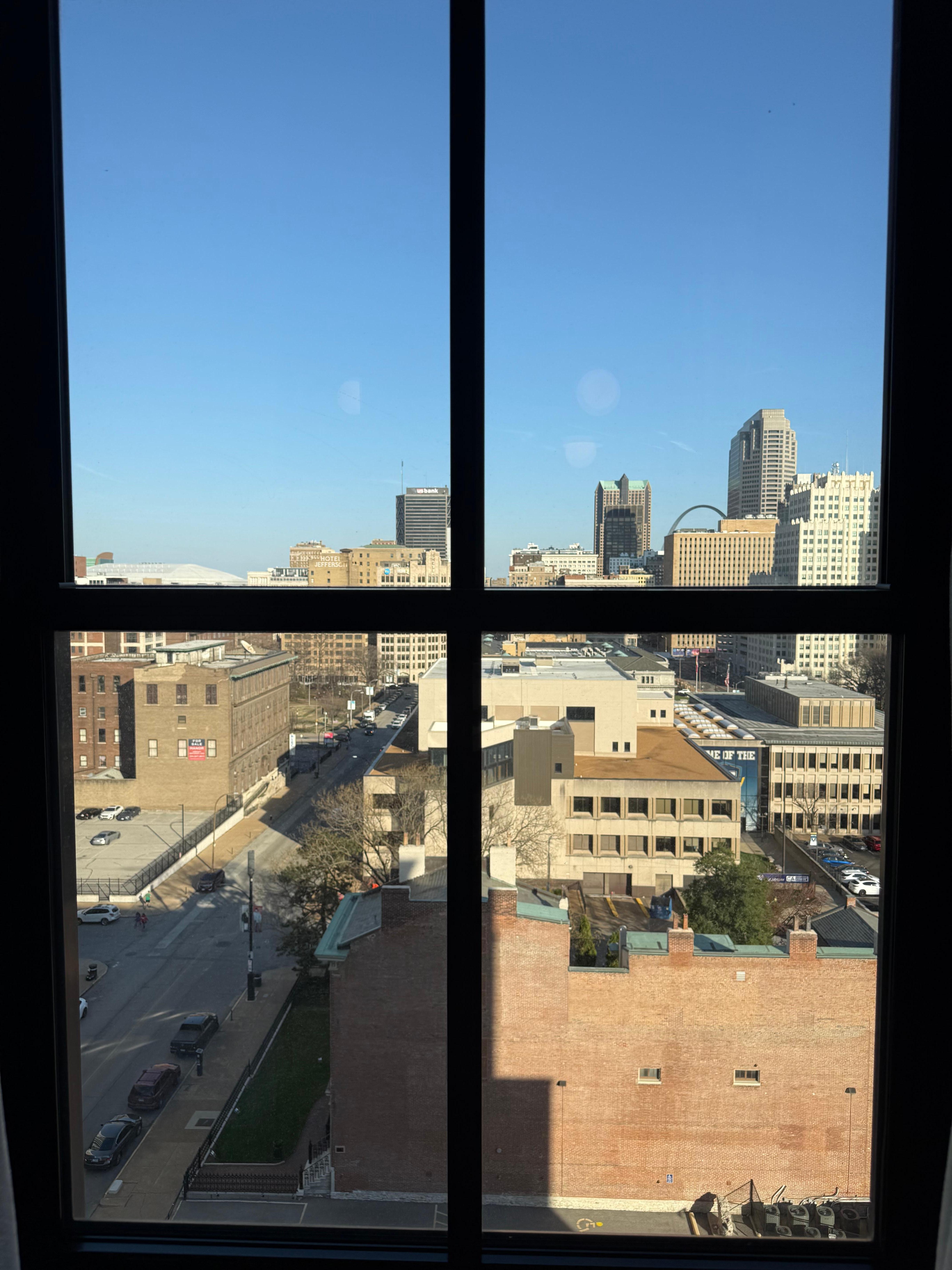 Hotel was very quiet and staff helpful and courteous. The coffee shop was great for coffee and breakfast and the rooms were clean with hot water and great water pressure. The only thing I would change was the mattress - bed was very firm, kind of felt like lying on a table. Gallery was a fun feature and next time I'm in STL I will be back!