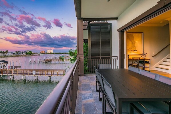 Outdoor dining - Waterfront Townhome w/Game Room & Boat Slip! Walk to the Beach | Beach Gear Incl (Clearwater Beach)