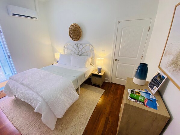 While this ground-level retreat may appear unassuming, it unveils the opulence of a King-sized bed that cradles two guests in pure comfort. Each suite boasts a commodious full-size bathroom, complete with a blow dryer, iron, ironing board, and a luggage rack. For ultimate comfort and tranquility, blackout shades conceal behind bamboo blinds, ensuring restful nights and rejuvenating afternoon siestas. Additionally, for our furry friends, your pets are embraced with open arms upon approval, accompanied by a pet fee to ensure their delightful stay.
