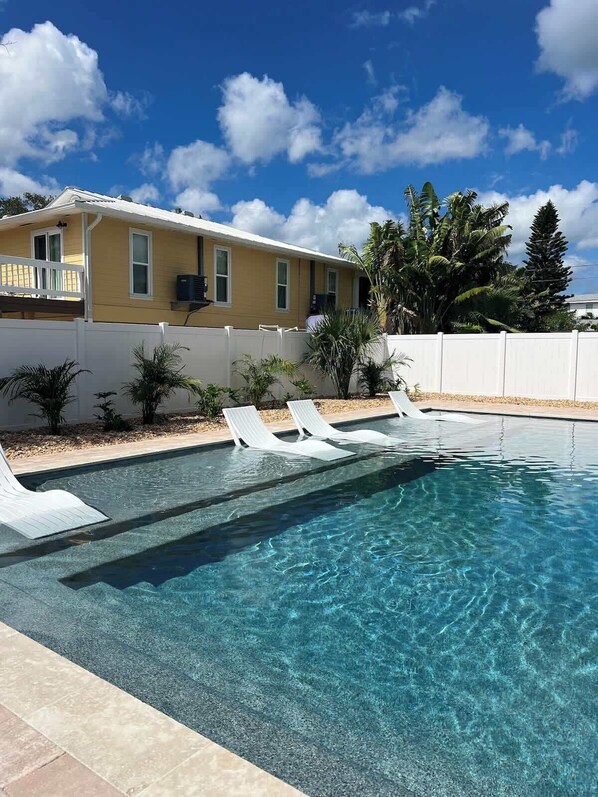 Outdoor pool, a heated pool - Luxury Beach Bungalow - Walk to Dining & Sunset (Indian Rocks Beach)