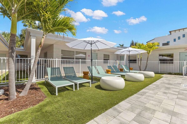 Does Studio w/ King Bed | Heated Pool, Steps to Beach! have a pool?