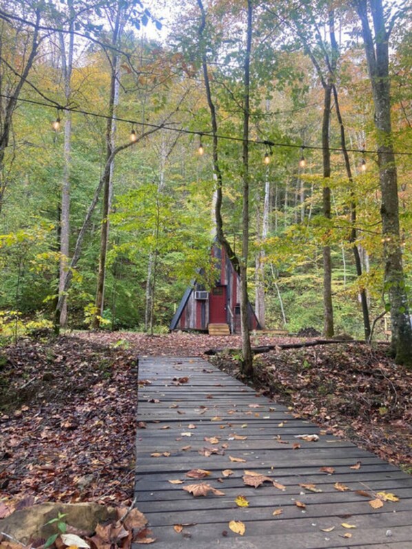 Located on the entrance to the Daniel Boone backcountry byway, Glamping @Punkin Hollow Resort offers a tranquil retreat. Unwind in one of five private A-Frame cabins or share moments with fellow travelers at the clubhouse kitchen. With hundreds of acres of trails, ponds and creeks to explore, this resort near Red River Gorge is perfect for nature lovers.