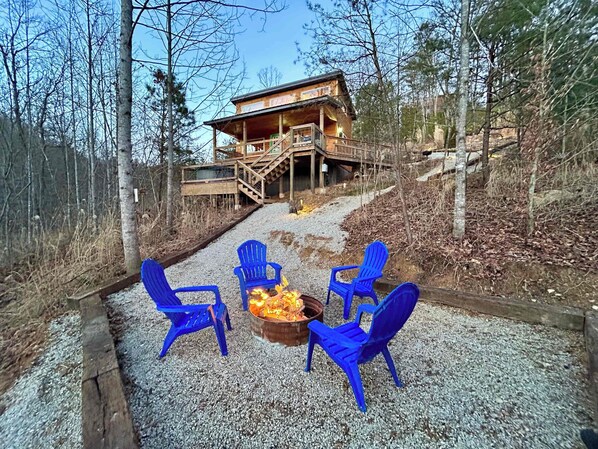 Outside, enjoy a large covered porch, an overlook swing facing the clifflines, a private hot tub, and a secluded fire pit—ideal for soaking in the views, stargazing, or unwinding in total privacy. Whether rain or shine, Muir’s Retreat offers a peaceful escape designed to help you disconnect and recharge