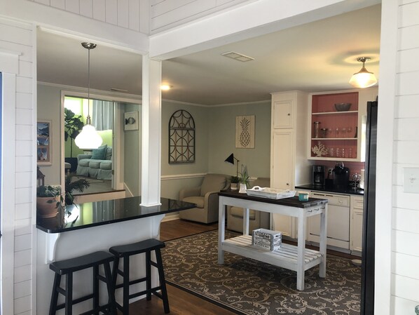 The kitchen, dining, and family room spaces exceeded our expectations as far as square footage and layout. The AC kept up with the summer heat and humidity, and we appreciated the wagon to use back and forth to the beach, which was just a quick 5 minute walk.
